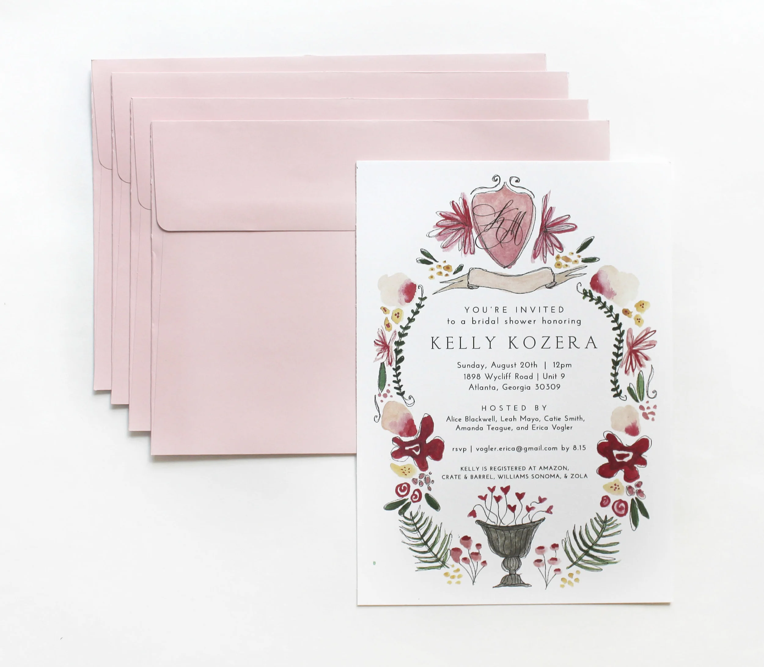 I combined a custom watercolor painting with digital typography to create a modern romantic invitation for a bridal shower.