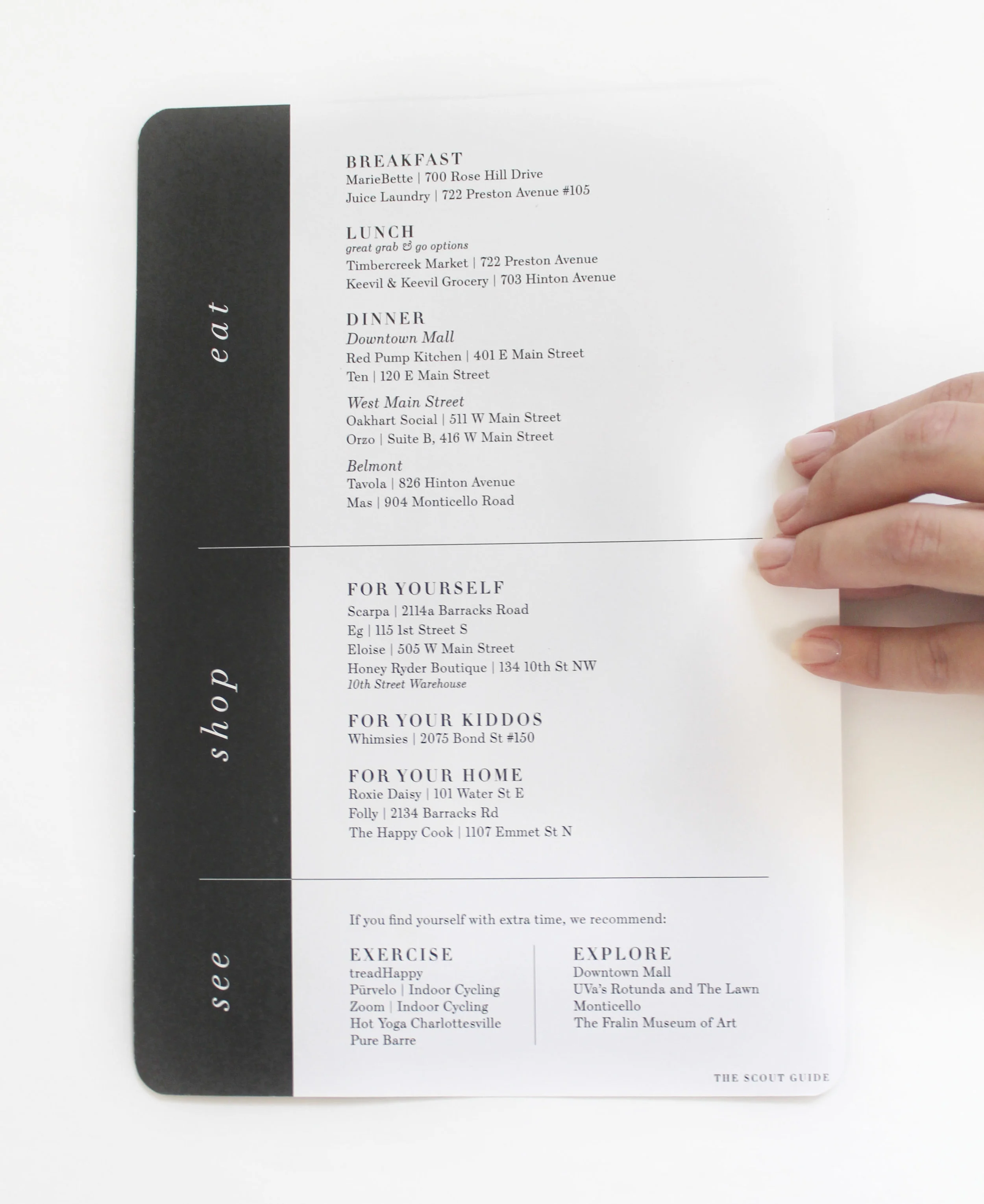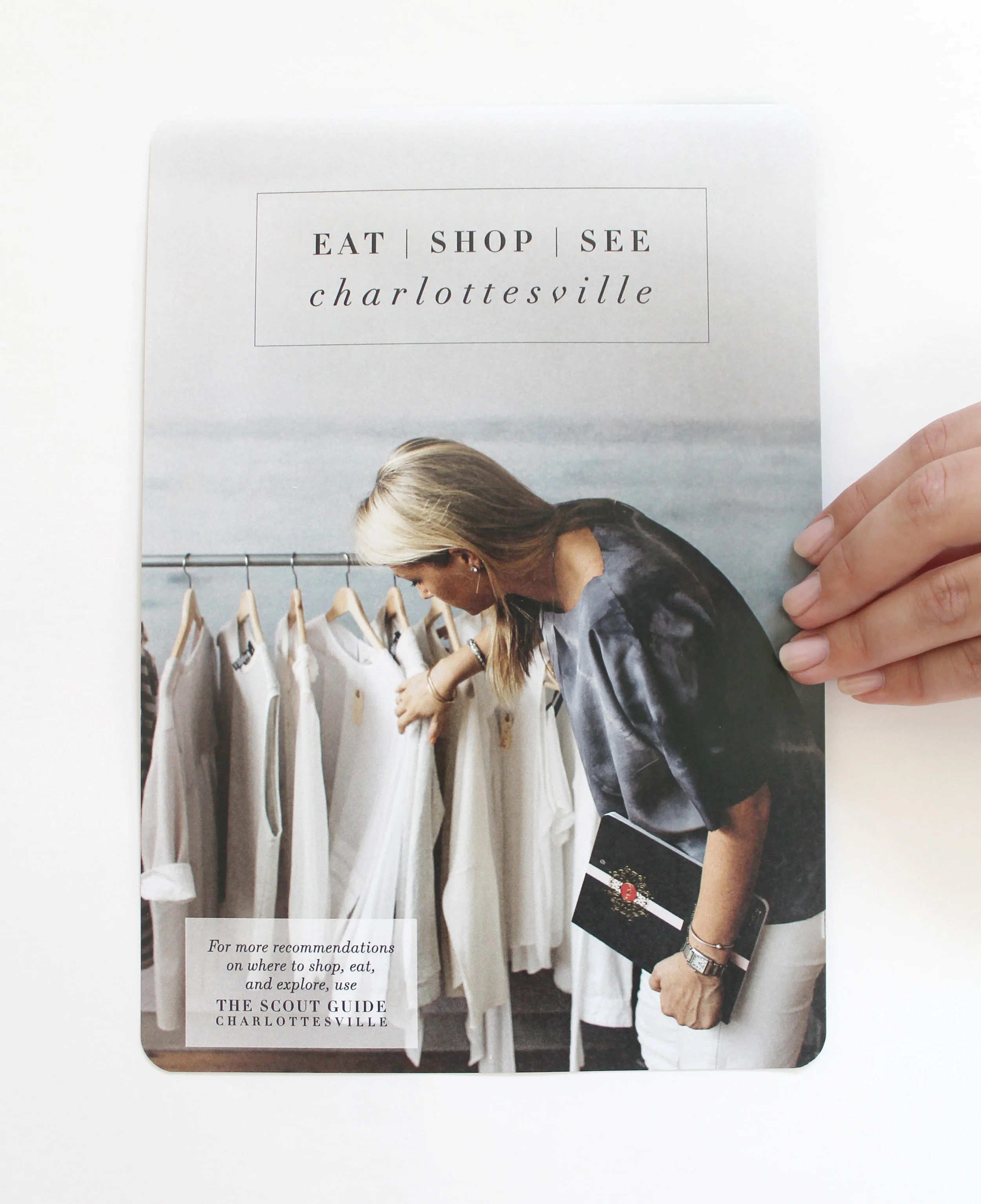 I was requested to make an itinerary for TSG Editors visiting Charlottesville, VA, where HQ is located. They are intended to be a companion piece to The Scout Guide Charlottesville and give visitors a visual welcome as well as local recommendations.